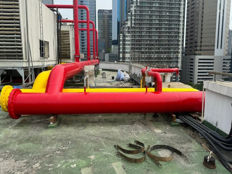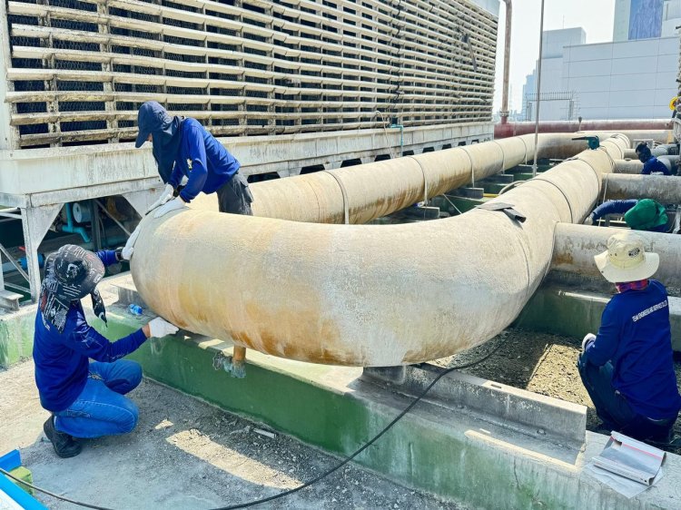 รับเคลือบท่อเหล็กบริเวณคูลลิ่งทาวเวอร์ ตามโรงงานอุตสาหกกรม อาคาร โรงแรมและสถานที่ต่างๆ