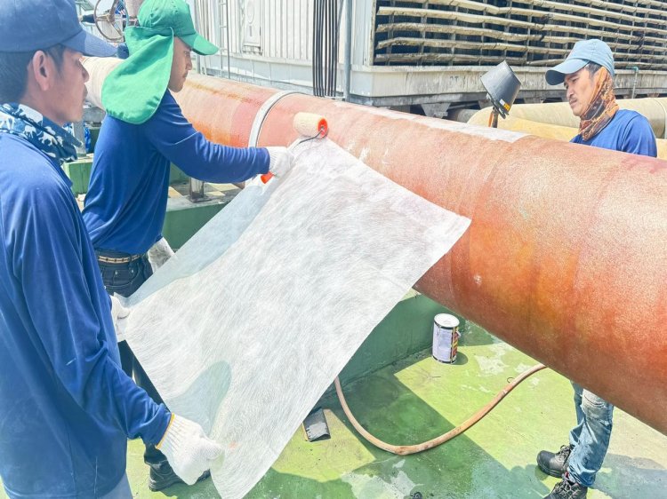 งานเคลือบท่อเหล็กด้วย ไฟเบอร์กลาส Cooling FRP